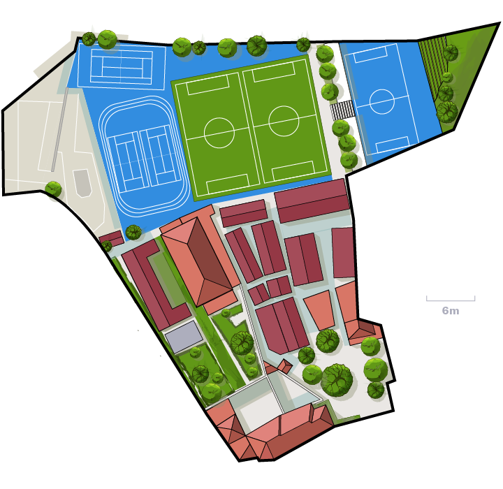O colégio dispõe de múltiplos campos e áreas para a prática desportiva, incluindo um campo multidesportivo.2º Ciclo - 5º Ano