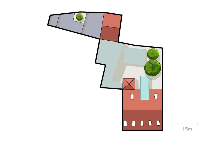 Entre o jardim dos azulejos e o campo de jogos localizam-se as cinco salas de aula de 5º ano.1º Ciclo